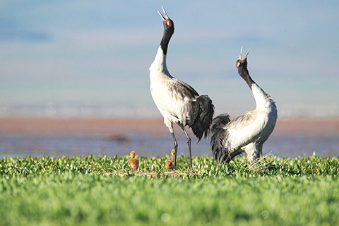 「環境好不好,動物有最直接的發言權。」陳有順說,每年3月下旬到11月,尕海濕地成為候鳥補充食物、養精蓄銳的理想驛站。截至目前,該濕地內植物達386種,動物109種,水鳥80種。近幾年,黑頸鶴數量維持在80隻左右,「鳥中大熊貓」黑鸛數量維持在150隻左右。