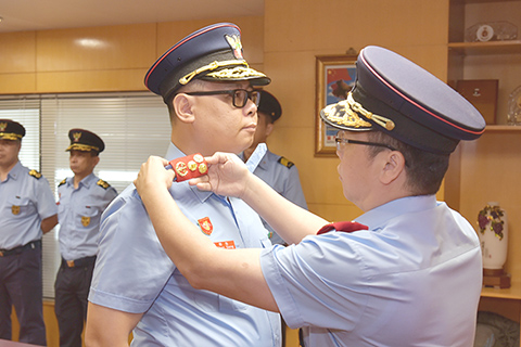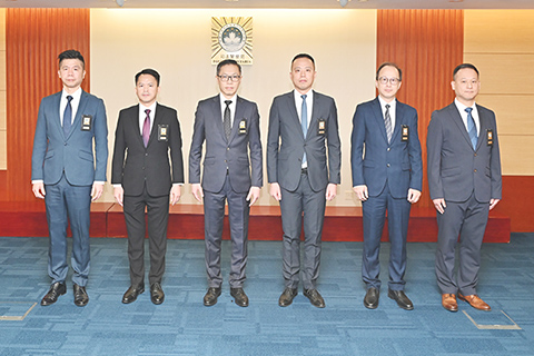 【特訊】司法警察局於2024年5月16日在總部大樓舉行主管就職儀式,在薛仲明局長監誓,並在賴文威、蘇兆強、岑錦榮三位副局長及各部門主管的見證下,賴釗洪二等督察宣誓就任保安廳廳長、劉永權副督察宣誓就任特別調查處處長。