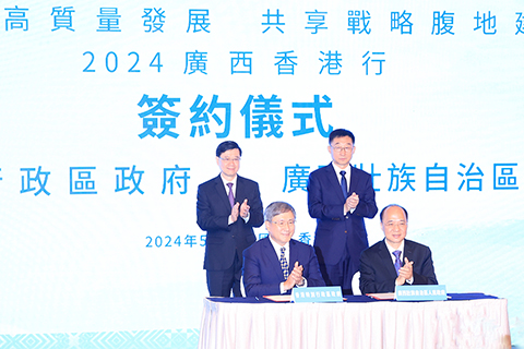 其中,香港特區政府與廣西壯族自治區人民政府簽署全方位合作意向書,相關部門就金融、城市建設、文化旅遊、交通運輸、貿易達成5項協議,投資合作項目26個,合同總投資額達484.78億元人民幣。
