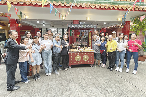 【專訪】出席昨日「新橋蓮溪夜市」介紹會的人士有:旅遊局旅遊產品處葉穎珊處長,新橋區坊眾互助會梁慶庭會長,澳門新橋商戶聯合會潘鈫亮會長,澳門新橋商戶聯合會馮穎賢副理事長,澳門新橋商戶聯合會吳嘉斐副理事長等。