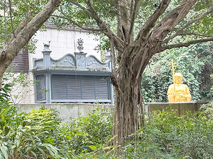 那天我與友人沿著林村河畔的梅樹坑公園走,不久就在公園的樹林裡找到了重修後的常寂園。在常寂園的外圍種植了不少老樹,它們都生長得奇形怪狀,其中有一棵尤其全神,像是一隻手把樹身環抱著,友人稱它做鬼手樹。重修後的常寂園,外圍以石屎牆包圍著,看去已經陳舊,畢竟已經重修了幾年,從它門前的告示,可以知道它現在是一所私營的骨灰龕場,專營龕位的買賣及出租的。