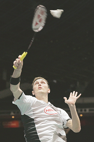 台灣另一男單好手、「左手重砲」林俊易,今天則對上現任球王丹麥名將安賽龍(Viktor Axelsen),雖然力拚58分鐘,仍以16比21、21比14、16比21敗下陣來。