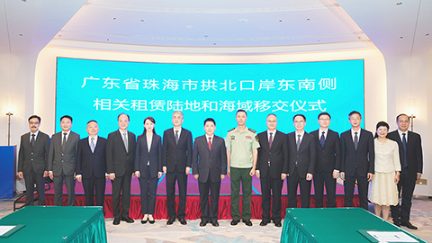 五月三十一日上午,珠海市舉行拱北口岸東南側相關租賃陸地和海域移交儀式,澳門特區政府行政法務司司長張永春、珠海市市長黃志豪、中央政府駐澳門聯絡辦公室經濟部副部長楊皓等出席儀式。