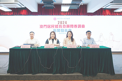 澳門婦聯總會繼2019年、2022年進行生育意願調查後,於今年4月份再度開展「2024年澳門居民婚育意願調查」,分析居民對於婚姻與生育方面的實際情況與最新需求。昨早在婦聯大廈二樓禮堂發佈調查結果,立法議員、婦聯副理事長黃潔貞,副監事長、議政維權部副行政主管歐陽月勝,副主任葉詠康、政策研究員陳立柱主持新聞發佈會。