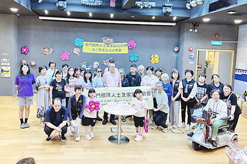 【特訊】視障人士及家屬互助會前日假社工局建康生活教育園地舉辦上半年度會員生日會暨慶祝父親節及端午節活動。是次活動組織會員及家屬、義工約七十人參與,活動由社工局資助。