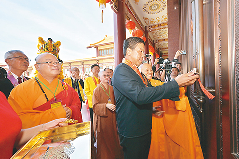其中,來自台灣的慶賀團人數最多,逾500人,成員遍布全台各道場,一同分享泰華寺落成啟用的喜悅。◇