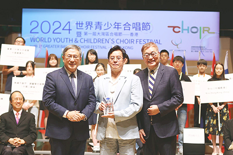 阿倫於十六日下午出席完「二0二四年創新科技獎項嘉許禮」,即晚他又馬不停蹄以大使身份參與於文化中心舉行的「二0二四年世界青少年合唱節暨第一屆大灣區合唱節」開幕禮及當表演嘉賓。世界青少年合唱節集合23個國家共2600青少年參與,阿倫當晚和口琴家李俊樂加上香港兒童合唱團及烏托邦合同唱團,超過100人一起同台合唱了《朋友》和《To Love Somebody》,阿倫說:「今次表演,單靠鋼琴及一支口琴和國際青少年們用口唱出多層次的音樂,令到《To Love Somebody》這首歌注入了不同的養份,兼有另外一種欣賞的方向!」在幾乎沒有樂器伴奏下,以人聲合奏多層次的音樂,齊以歌聲傳揚「愛與和平」的主題,場面相當感動和震撼,阿倫衷心說:「當今戰亂禍延,希望透過這次演出帶出一個和平與愛的重要性,也希望小朋友懂得珍惜得來不易的和平。」