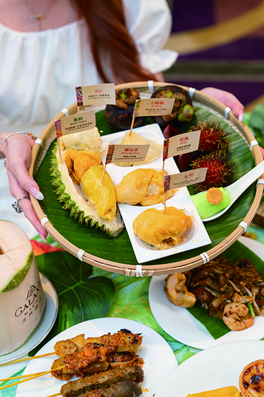 自助晚餐為每位客人奉上的「頂級榴槤拼盤」,包括貓山王及頂級黑刺等多款從馬來西亞新鮮空運的榴槤,加上以榴槤入饌的星級甜點和清爽可口的特色飲品,款款齒頰「榴」香。另有逾十款世界知名的榴槤供現場選購。