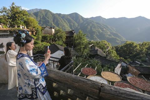 近年來,江西省上饒市婺源縣堅持「以農促旅,以旅興農」策略,深入挖掘和利用自然生態、傳統文化等特色資源,在保護生態環境和傳承傳統文化的基礎上,大力發展特色鄉村旅遊新業態,促進農村經濟發展,助力當地村民增收。◇(新華社記者 杜瀟逸 攝)