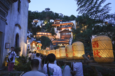◎ 七月三日,遊客在江西婺源石門村遊玩。