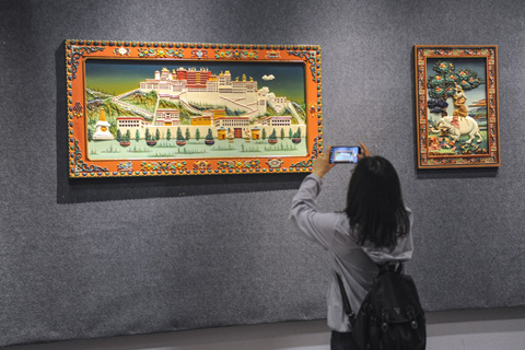 位於拉薩的西藏自然科技博物館展出「雪域彩韻-藏式木雕彩繪精粹展」,展覽集中展示了眾多精美的藏式木雕彩繪作品,它們是或由西藏職業技術學院師生創作,或來自西藏民間藝人之手,每一件作品都蘊含著豐富的文化內涵和精湛的工藝技巧。◇(中新社)