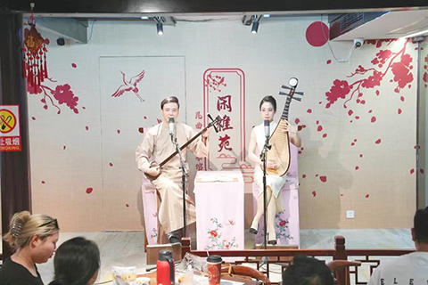 蘇州是崑曲與評彈的交匯之地,是江南文化的精髓。演出在每個整點和半點開始,每次時長40分鐘,崑曲評彈讓人好像穿越回繁華的江南時代。閒雅苑有兩家門店,青石橋店和蟬蛻店,無論寬敞抑或私密,都能找到合適需求。青石橋店是蘇州傳統的園林風格,小橋流水、粉牆黛瓦。在此欣賞演出,還能喝到陸羽喜歡的香茗,無論是經典的《牡丹亭》,還是崑曲《水滸記·借茶》《青衫淚·坐濕青衫》《紅拂記·俠女私奔》等折子戲,都能看到茶水、茶客、茶飯的往事回憶。
