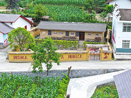 坎是石砌的,牆是土夯的,門是木製的,頂棚是茅草搭的。門口寫著毛主席語錄「廣闊天地,大有作為」,一邊一句,做成對聯狀。這種極具年代感的院牆形象,給人以強烈的記憶衝擊。