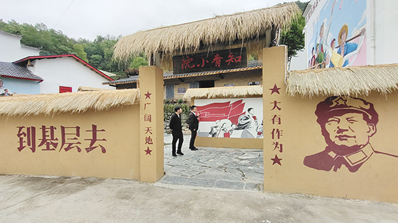 院門兩側的內牆,是介紹知識青年上山下鄉歷史背景、本地知青工作、本院知青簡況的文化牆。從老知青林月琴的講述中我們獲悉︰從老知青林月琴的講述中我們獲悉:一九五五年河南省郟縣大李莊鄉給黨中央、毛主席上報了《在一個鄉裏進行合作化規劃的經驗》材料,毛主席看到城裏的中學生參加農業生產建設的經驗後十分高興,揮筆寫下了「農村是一個廣闊的天地,在那裏是可以大有作為的」經典批示。自此,「知識青年上山下鄉」在中國大地推開。