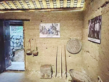 林月琴介紹︰「把玉米、小麥、豌豆、黃豆等原糧磨成細糧,然後去生火煮飯,是我們當初要過的最基本的生活關。」她又指著對面的石碾說︰「把稻穀在這裏脫粒,變成米粒;把玉米芯子在這裏壓碎,變成豬飼料;把玉米、黃豆等雜糧的稭稈,甚至一些野草碾爛,變成牛羊的精飼料,是我們在過生活關、勞動關時要學的基本手藝!」