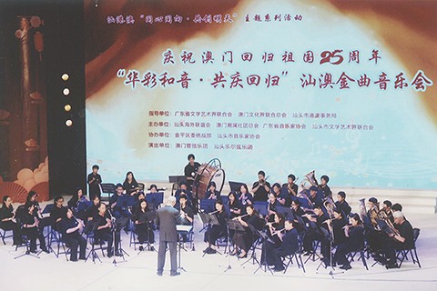 八月十七日晚上,管弦樂團轉到汕頭,在當地的廣播電視中心綜合劇場,演出了一場名為華彩和音、共慶回歸。汕澳金曲音樂會、管弦樂團除了演奏一系列的廣東音樂之外,還特別演奏了採茶撲蝶和愛我中華等當地民眾喜愛的樂曲,最後更和汕頭的樂爾弦樂團合作,演奏了管弦樂版本的步步高及我和我的祖國,為此行潮汕巡演劃上圓滿的句號。