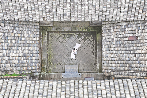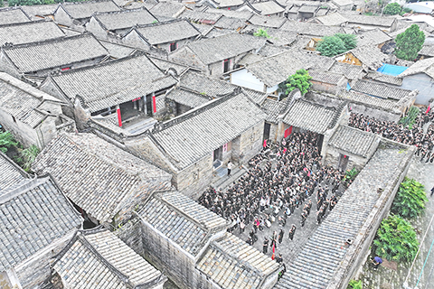 ◎ 八月十五日,人們在大蘆村鑊耳樓參觀(無人機照片)。