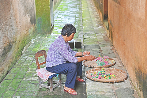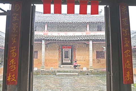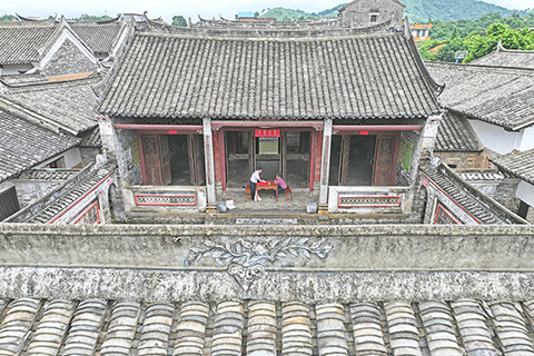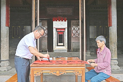 ◎ 八月十五日,楹聯愛好者在大蘆村古宅裏寫對聯(無人機照片)。