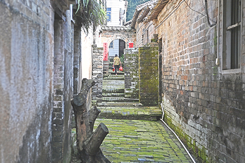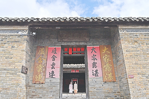 廣西欽州市靈山縣佛子鎮大蘆村以「古建築、古楹聯、古樹」三古著稱。 大蘆村有完好的明清建築群,古建築群面積達廿五萬平方米。古宅融合自然,依山傍水而建,形成「背靠青山面朝綠水」的居住環境。古宅多為磚木結構,設計獨特,兼具實用與美觀,保存有傳世楹聯三百零五副,內容以修身、持家等為主。 大蘆村以勞姓人口佔主導。勞氏始祖明嘉靖年間定居於此,至今已傳十九代,歷經四百七十餘年,形成獨特的耕讀傳家文化。該村於二0一二年被列入第一批中國傳統村落名錄。(新華社記者周華 攝)