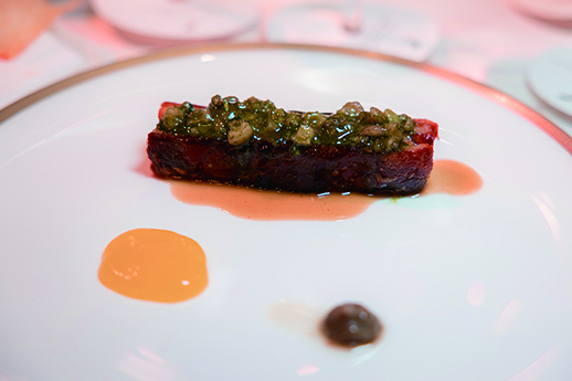 是次盛宴由澳娛綜合旗下米芝蓮三星「天巢法國餐廳」、米芝蓮二星「8餐廳」、福布斯五星粵菜食府「御花園」、摩登葡式風味「味賞」、日式割烹盛宴「瑞兆」、全球知名意式美饌「當奧豐素1890」、經典上海及淮揚佳餚「華亭」,及「嘉樂酒吧」八家餐廳的九位主廚合作,匯聚中、葡、意、法、日多國的烹調技藝,臻選優質時令食材,呈獻量身訂製的創新意念。