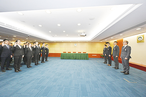 【特訊】司法警察局於本月五日舉行首席刑事偵查員就職儀式。在薛仲明局長主禮及監誓,賴文威、蘇兆強、岑錦榮三位副局長和各部門主管的見證下,共七十八名人員宣誓就任首席刑事偵查員。
