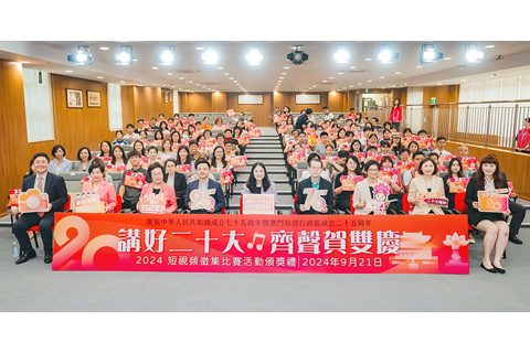 為慶祝中華人民共和國成立七十五周年、澳門特別行政區成立二十五周年,由澳門婦女聯合總會主辦、澳門基金會贊助的「講好二十大,齊聲賀雙慶」短視頻徵集比賽頒獎禮假教業中學多功能室舉行,中聯辦社工部處長費春燕、宣文部處長張偉,澳門基金會行政委員會委員區榮智,教育及青年發展局青年廳廳長張敏輝,婦聯總會永遠會長賀定一、會長劉金玲、理事長袁小菱,中華教育會青年協會會長馬耀鋒,中華學生聯合總會主席阮舒淇等主禮。
