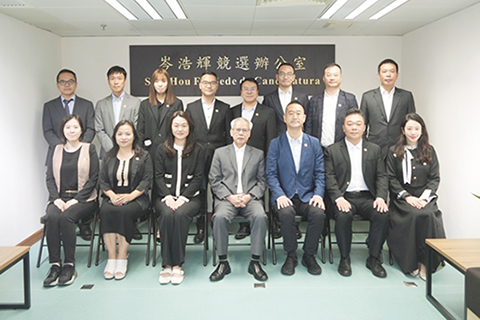 【特訊】岑浩輝競選辦公室發稿表示,十月四日下午三時,第六任行政長官候選人岑浩輝在代理人李煥江、競選辦公室主任葉兆佳、副主任陳家良等陪同下,拜會了同善堂,與同善堂值理會主席崔世平、監事長賀定一等領導層成員座談並聽取意見。