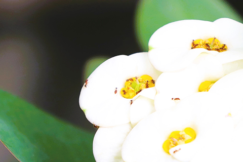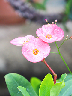 「台上花開又一季,台下風雨幾時起」。說的就是鐵海棠,又名「虎刺梅」。那是因為此花是蔓生灌木植物,密生硬而尖的錐狀刺長滿整條莖,可欣賞卻不要摘之。