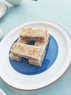 荔浦脆皮芋絲糕有上下兩層,最上面和最下面都是白芝麻,都是煎的,很焦香,咬下去很有層次感。好吃的,芋頭軟糯,夾心有火腿肉,但不膩,皮脆脆的,有芝麻香氣。