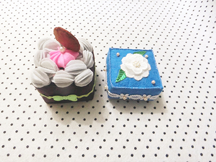 (八)最後在蛋糕布面的適合位置上,縫上小珍珠,便完成。◇
