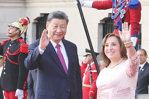 習近平同秘魯總統博魯阿爾特舉行會談 2024-11-16 03:30:00 ◎ 當地時間11月14日下午,國家主席習近平在利馬總統府同秘魯總統博魯阿爾特舉行會談。博魯阿爾特在總統府前廣場為習近平舉行隆重盛大歡迎儀式。(新華社記者 丁林 攝)
