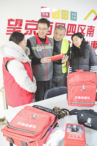 ◎ 十一月廿八日,望京街道西園四區南社區的志願者在學習應急救援包使用方法。 當日,北京市朝陽區望京街道舉辦「望京急先鋒」應急志願服務隊成立儀式。望京街道各個社區組織了由居民黨員、社區幹部、外賣員、快遞員、社區保安、社區物業人員、社區商戶等志願者組成的應急志願服務隊,並為各應急志願服務隊配發了應急救援包、便攜應急包等,以提升社區治安、消防、急救等應急處置能力和應急服務水平,為居民創造平安生活環境。(新華社記者李欣 攝)