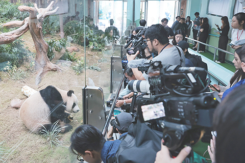 【香港中通社十二月二日電】(梁嘉軒)為讓公眾提前了解較早前中央贈港的兩隻大熊貓,「安安」和「可可」二日「會見傳媒」,全球多家媒體到場,了解大熊貓在港居住的最新情況。