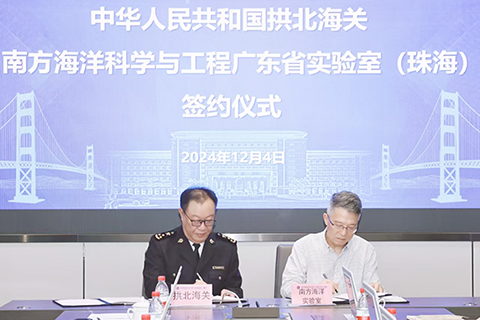 【記者陳藝珠海報道】十二月四日下午,拱北海關與南方海洋科學與工程廣東省實驗室(珠海)簽約儀式在南方海洋實驗室舉行。拱北海關關長詹少彤與南方海洋實驗室主任陳大可院士現場簽署《拱北海關、南方海洋科學與工程廣東省實驗室(珠海)合作框架協議》。此次簽約儀式旨在進一步築牢國家生物安全屏障,全面落實海洋強國戰略,助力粵港澳大灣區國際科技創新中心建設。