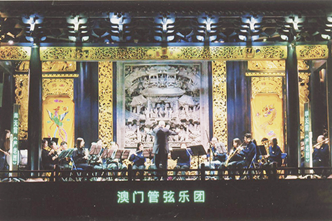 澳門管弦樂團為慶祝建國七十五周年,澳門回歸廿五周年,十一月三十日前往廣州,演出了一場粵韻金曲音樂會。廣州的粵劇藝術博物館,是一座古色古香、充滿南國建築風情的地標建設,管弦樂團的管樂隊在裡面的廣福台上演出,是首度的、歷史性的以西方管樂隊來吹奏廣東音樂。當晚的效果佳良。夜幕底垂,華燈初上,博物館內遊人眾多。沉醉在迷人美景當中,樂團奏起了娛樂昇平、楊翠喜、春風得意、平湖秋月、雙飛蝴蝶等粵樂,更添藝術氛圍意境,為粵劇成功名列世界文化名錄十五周年加深意義。此外十一月廿九日乃是一代名伶藝術家任劍輝逝世三十五周年,樂團亦特別邀請到兩位歌唱家周艷芳小姐和李美瓊小姐,合唱了帝女花和紫釵記的主題曲。首度以西方管樂隊來伴奏傳統粵調,具有創意,色彩繽紛,效果特別感人。澳門管弦樂團這一創舉,給廣州市民留下深刻印象,成功為傳統廣東音樂和粵劇表演藝術,帶入另一個的嶄新篇章。◇