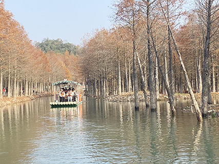 沿著「皖南川藏線」繼續蜿蜒前行,山景、稻田、溪流、咖啡店……沿途風景不斷變換。數小時後就到了寧國市方塘鄉,兩千餘畝紅杉林靜靜地伫立在水中央。
