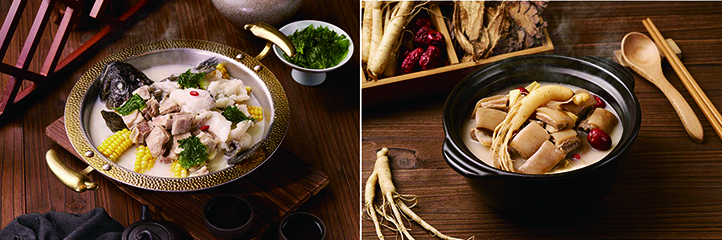 「澳門銀河」閩菜代表的莆田推出檳榔芋燒梭子蟹,梭子蟹配以檳榔心芋煮成的湯汁,味道鮮美。既秉承閩菜傳統,又加入了東南亞風味,是「澳門銀河」店獨家的限定菜式。巧麵館的滋補藥膳羊肉煲,將羊肉與鮮人參、生薑、枸杞等藥材慢火燉煮,羊肉軟嫩,甘香濃厚,更有補氣養血、健脾暖胃等功效。其他還有銀河氹仔漁村的麻婆蘿蔔糕炆膏蟹,鹿港小鎮的台式養生的鮑魚薑母鴨,北膳樓的宮廷滋補魚羊鮮,彭慶記的五指毛桃汁山藥燜甲及百樂潮州酒樓的栗子排骨大芥菜煲等。