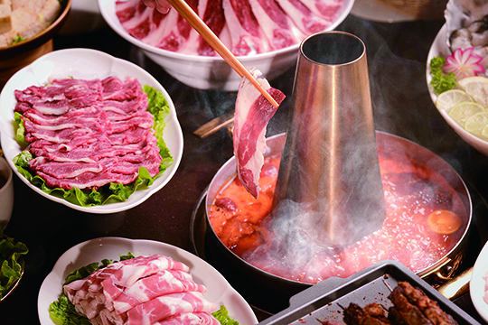北膳樓則帶來北方寧夏鹽池灘羊肉火鍋及東北新鮮原漿啤酒,肉質鮮嫩,搭配山菌與多種醬料。