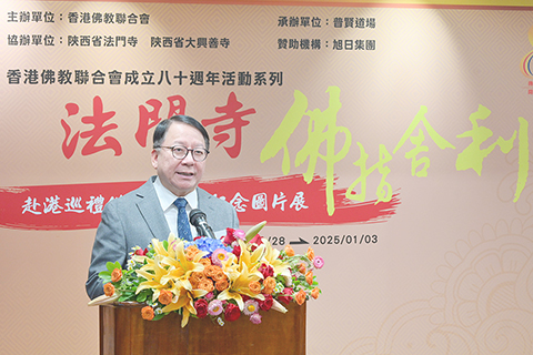 他強調,香港正邁向「由治及興」的新征程,其中「興」不僅指經濟發展,也包括民心教化。佛教在中華文化中佔有重要地位,他期待通過本次圖片展,讓香港市民在佛理中得到啟發,共同以愛回饋香港這個家。