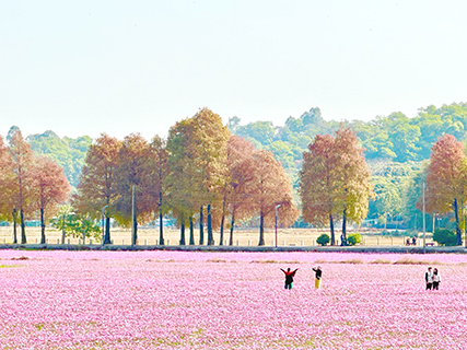 去年這個時間,也曾來過,人很多,今天是星期五,漫步田間小道,優優悠悠,很舒服,很美。遠處的一行落羽杉,紅葉比去年變色得更合時,襯托起來,更美。估計還有十多天的賞花期,值得來。