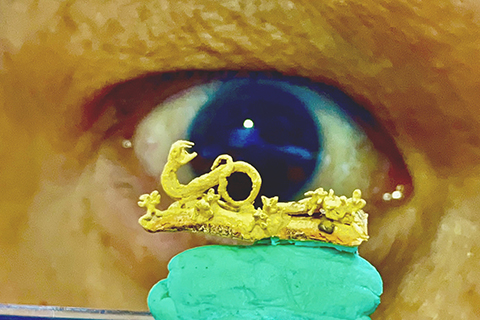 ◎ 為迎接二零二五蛇年的到來,台灣雕刻大師陳逢顯推出新作品,雕刻世界最小「黃金蛇」呈祥獻瑞,作品名稱「豐收」,盼大家能走上豐收興旺的一年。陳逢顯這件世界最小黃金蛇作品共耗時六個月完成,尺寸長零點八公分、寬零點三公分、高零點五公分,旁邊還有六隻黃金雕刻的小老鼠,象徵豐收的意思,每隻小老鼠的尺寸只有零點一公分左右,這件蛇與老鼠的作品,雕刻的栩栩如生,讓觀看的人讚嘆不已!而且必須透過高倍的放大鏡觀看,才能一窺全貌。(香港中通社圖片)