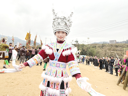 正月十三,廣西柳州市融水苗族自治縣「十三坡」在安太鄉拉開序幕。連日來,融水系列坡會連番舉行。苗族姑娘們穿上節日必備盛裝——百鳥衣,在蘆笙旋律中翩翩起舞,裙襬相互映襯,掀起「最炫民族風」。圍觀遊客發出陣陣讚嘆,不時拿起手機拍照留念。