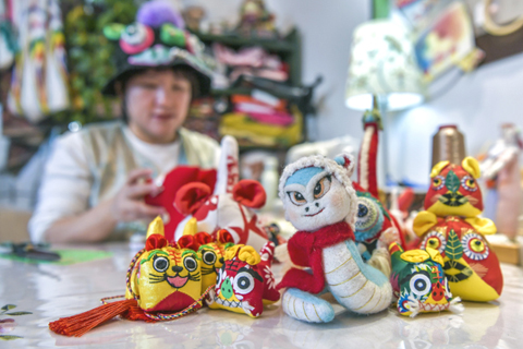 馬秀玲是烏魯木齊市級非遺代表性項目布老虎技藝代表性傳承人,自幼喜歡手工藝,跟隨母親學習縫製布老虎,後遠赴山東拜師學習,鑽研布老虎的傳統製作技藝。成立工作室後,馬秀玲在布老虎的設計、打版、剪裁等過程中,將新疆艾德萊斯綢等地方文化元素融入其中,並在耳環、帽子、枕頭等文旅產品中融入布老虎製作技藝,推出一系列富有特色的布老虎產品,受到消費者的追捧。◇(中新社)