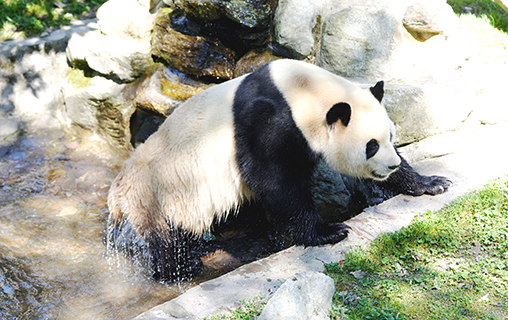當日,「福寶」穿梭于新栽種的綠植間,自如地使用起新增設的攀爬樹、倒木等豐容設施。
