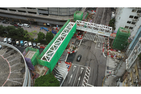 沙梨頭海邊大馬路行人天橋建造工程是完善林茂空中走廊的重點項目之一,主要包括建造連接運順新邨、信步閑庭及亞洲工業大廈的「L」型行人天橋,以及相關落腳點的升降機、電動扶梯和樓梯等輔助設施。◇