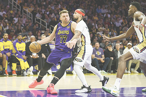 【又訊】美國NBA籃球常規賽,洛杉磯湖人124:108,擊敗新爾良塘鵝,過去4場比賽取得第3場勝仗,升上西岸第3。湖人表現慢熱,首節落後5分,到完半場以62:53反超,最終贏16分完場;當錫扭轉上場對金州勇士的低迷表現,攻入全場最多的35分,李維士30分,勒邦占士27分。◇