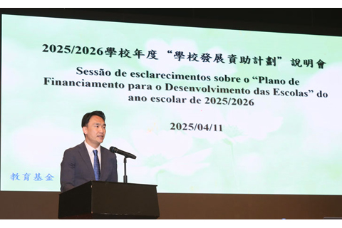 2025/2026學校年度「學校發展資助計劃」申請期由2025年4月9日至5月9日,詳情可參閱教育基金網頁(http://www.dsedj.gov.mo/fe)。◇