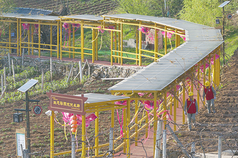 近年來,湖北省恩施州巴東縣土店子村開展農村能源革命試點,建設分佈式光伏、分散式風電、沼氣發電以及智慧配電網,打造「淨零碳排放」村莊。村裡的綠色發電設施隨處可見。荒坡、村民房頂、梨園長廊安裝著分佈式光伏,村道兩旁安裝佔地少、噪音小且更易融入村莊風貌的微風發電機。該村新能源裝機容量達一千八百七十一千瓦,不僅滿足了村民的用電需求,還有餘電外送。土店子村已成為湖北省首個實現百分之百清潔能源供應並能離網運行的「綠電村」「零碳村」。◇