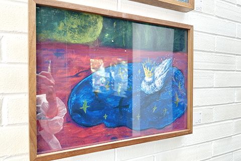 旅意插畫藝術家王琛就是一名思路開闊的「斜杠青年」,從事過話劇表演、樂隊演出等多項藝術工作,繪畫語言十分多變。他的作品《雅隆湖鳥王》正在插畫小鎮展出,描繪了湖中鳥群無憂無慮的生活狀態,頗受現場插畫愛好者歡迎。