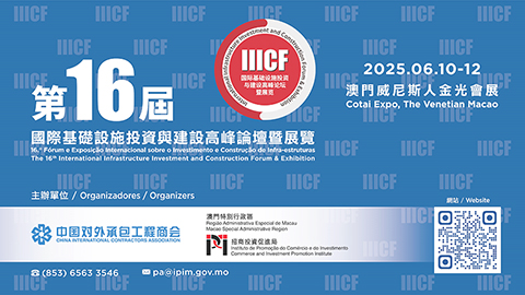 【特訊】由澳門特別行政區招商投資促進局與中國對外承包工程商會共同主辦的「第十六屆國際基礎設施投資與建設高峰論壇暨展覽」將於六月十至十二日(周二至周四)假澳門威尼斯人金光會展舉辦,主題為「更好互聯互通更多合作共贏」。突出全面升級的展覽規模,深化會展協同,擴大活動整體實效。